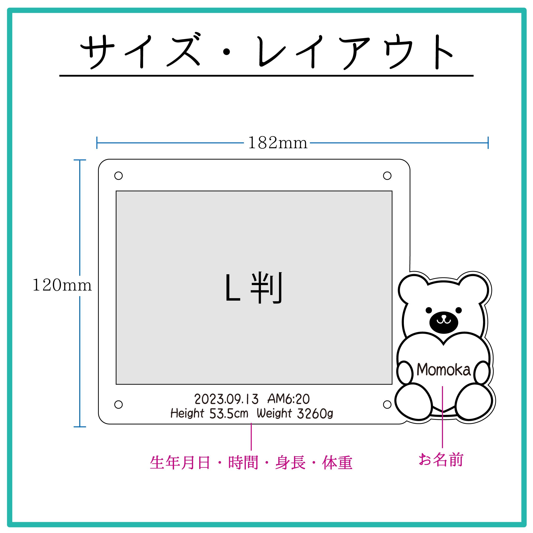 お名前・お誕生日入り:クマさんのフォトフレーム F01-1210
