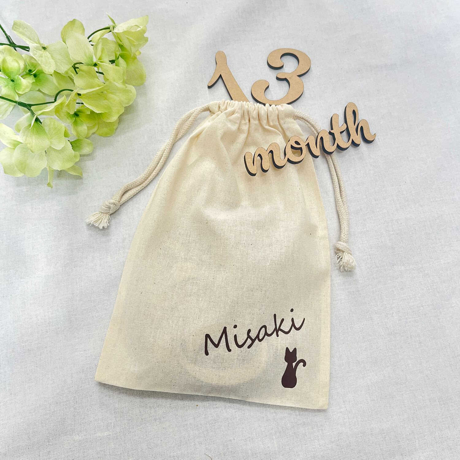 木製レターバナー・ニューボーンフォト・マンスリーフォト・お名前入り保存巾着付 MD01-572